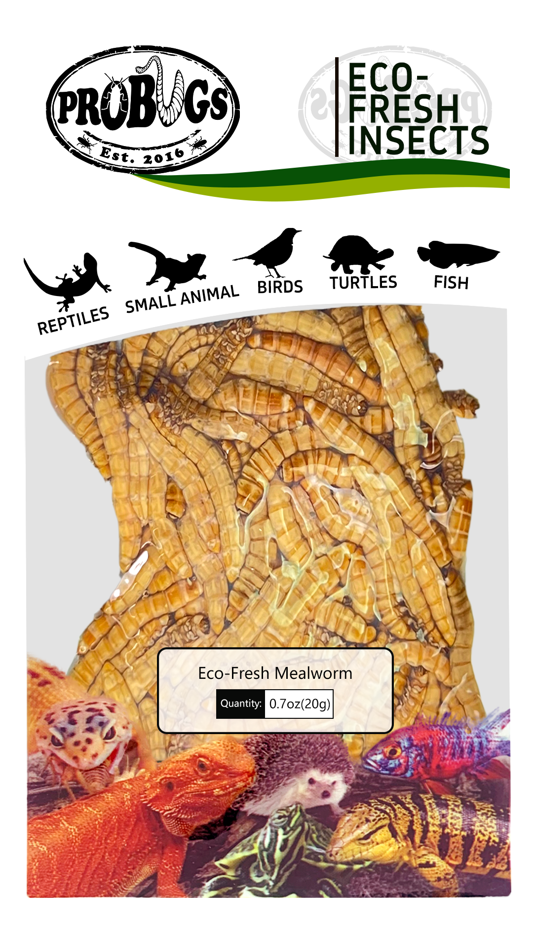 精选天然黄粉虫粉、蚕粉等原料 , 营养配比完全符合爬宠饲养标准,单一口粮即可满足日常营养需求。